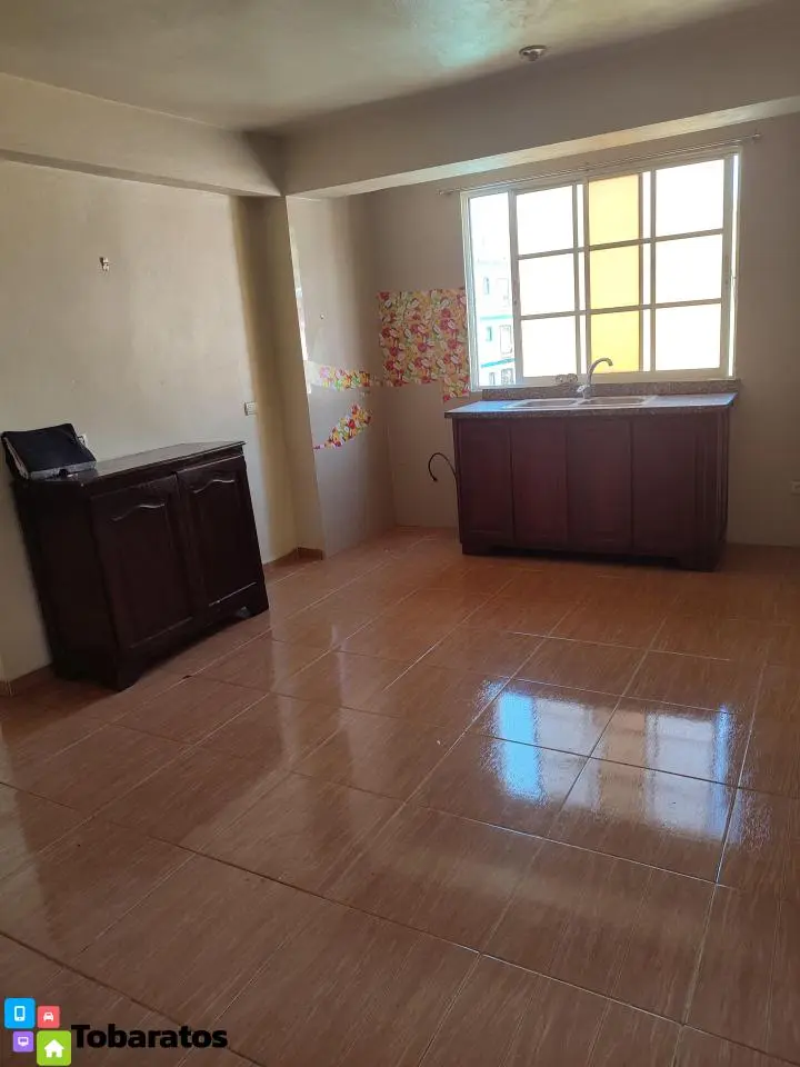 De 3 habitaciones, 2 baños, sala comedor, cocina.